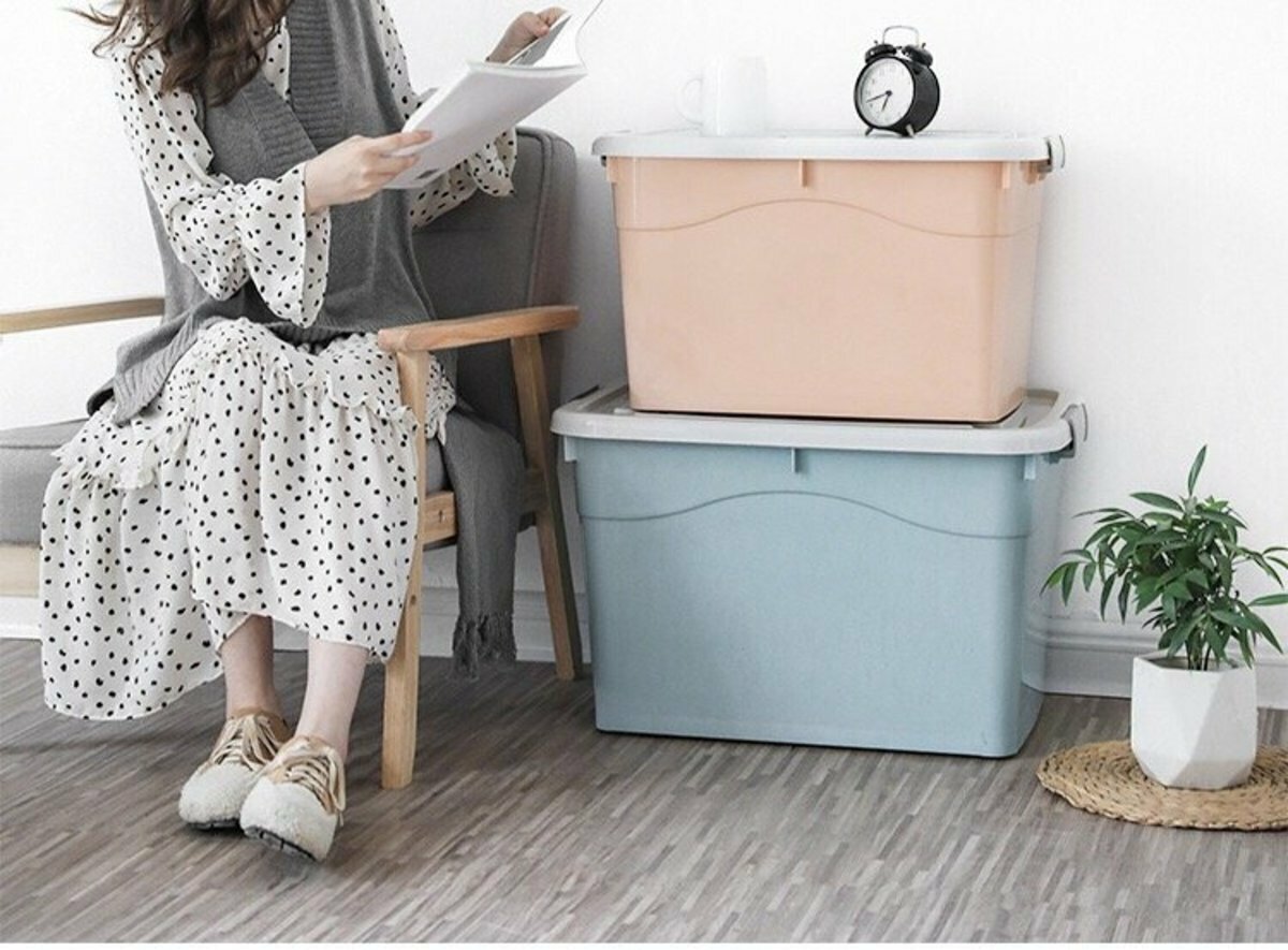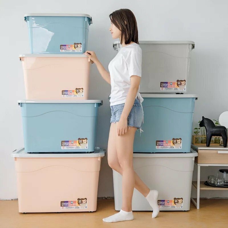 (限時特價)激抵家居儲物箱加厚收納箱膠箱(粉色#8828 尺寸:長72*寬53*高44cm )