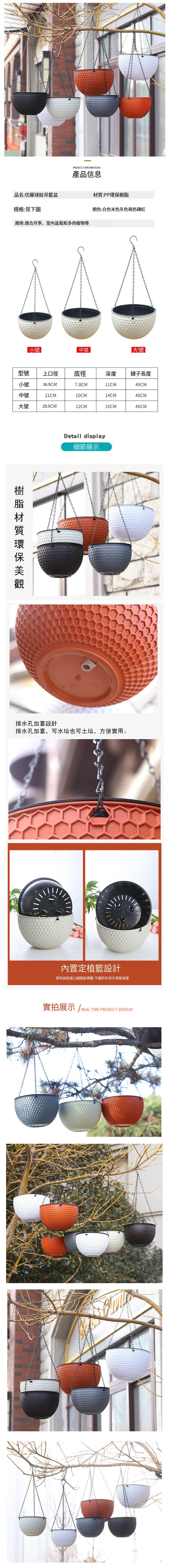 新款蜂窩式掛盆吊籃懸掛式花盆【棕色 大號:口徑25.5cm】