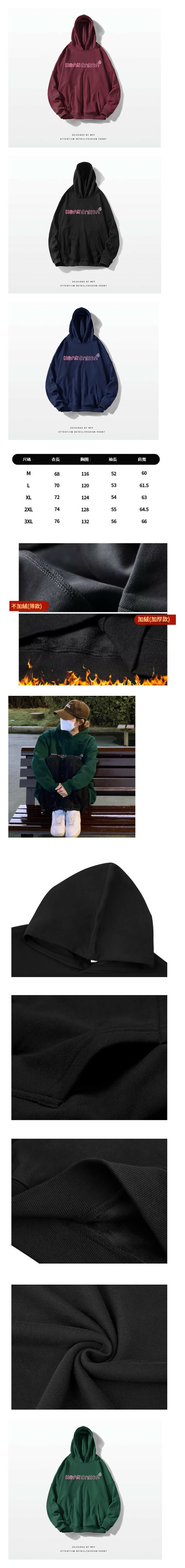新款連帽衛衣【M-3XL】【墨綠色-加絨加厚】(下單後聯絡客服確認發貨尺碼)