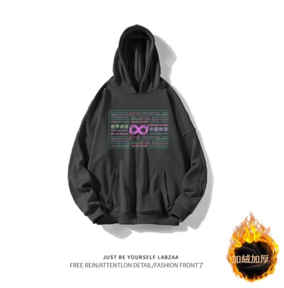 激抵連帽衛衣【M-3XL】【白灰色-加絨加厚】(下單後聯絡客服確認發貨尺碼)