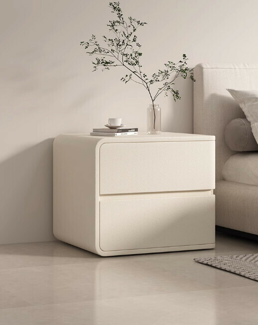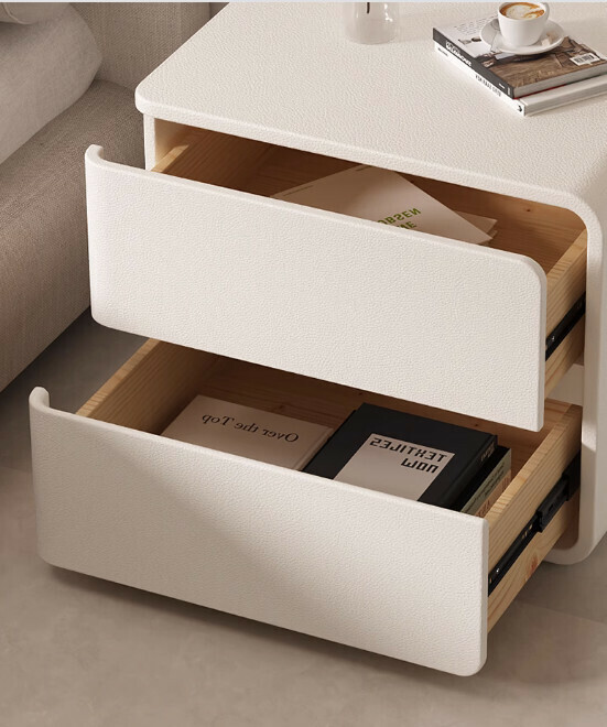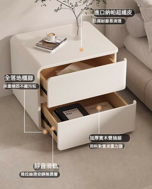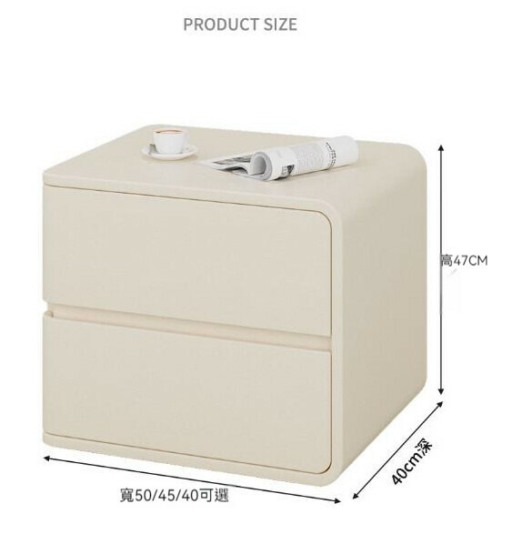 熱推奶油風實木床頭櫃(淺灰色左款)(尺寸:長50x寬40x高47cm)