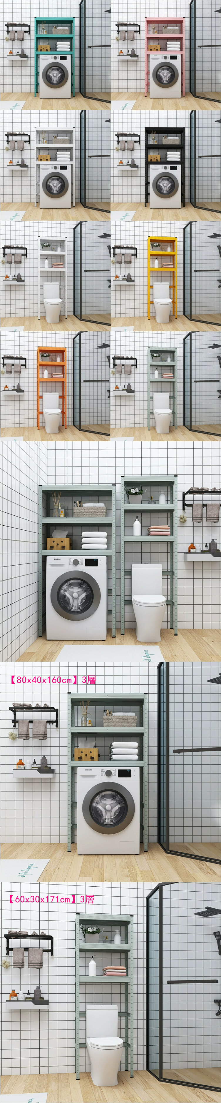 熱推鐵藝色彩 厨櫃 浴室儲物櫃 馬桶架 洗衣機置物架 【80x40x160cm】3層 灰綠色