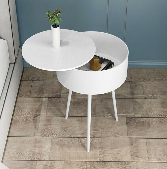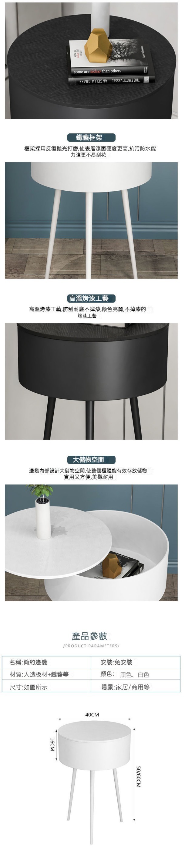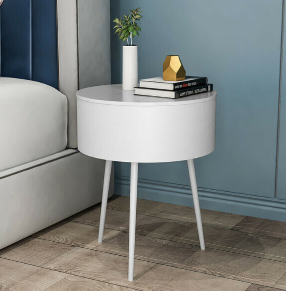熱推鐵藝迷你床頭櫃(白色)(尺寸:直徑40高度50cm)