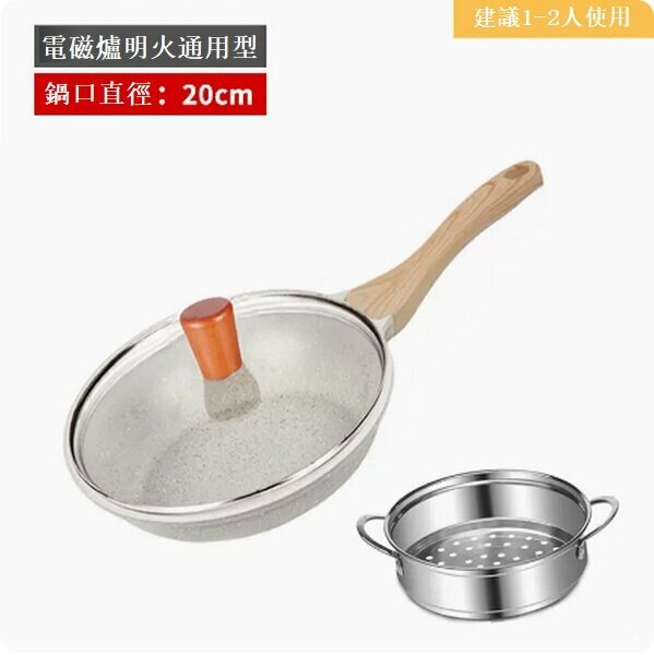 熱推麥飯石平底鍋不粘鍋【(加厚款)24cm+鋼化蓋(煎炒兩用)】