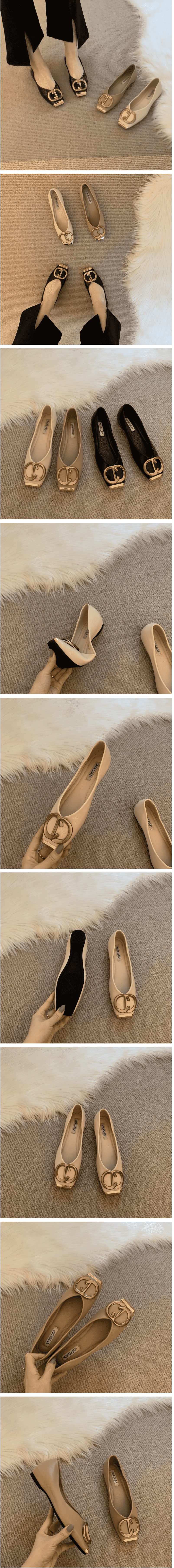 熱推金屬扣平底單鞋(米白色/35-39碼)(下單後聯絡客服確認發貨尺碼)