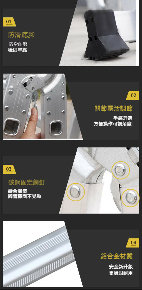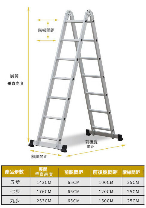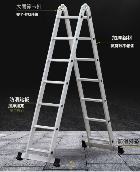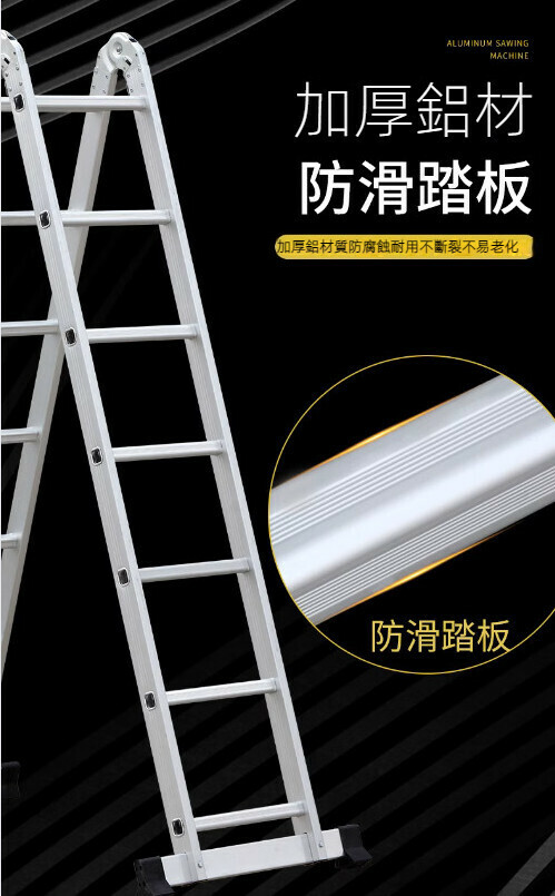 熱推鋁合金兩用伸縮單直折疊梯(沖壓鋁合金 1.5米人字梯-展開3米直梯)