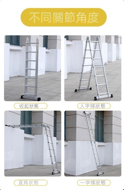 熱推鋁合金兩用伸縮單直折疊梯(沖壓鋁合金 2.5米人字梯-展開5米直梯)