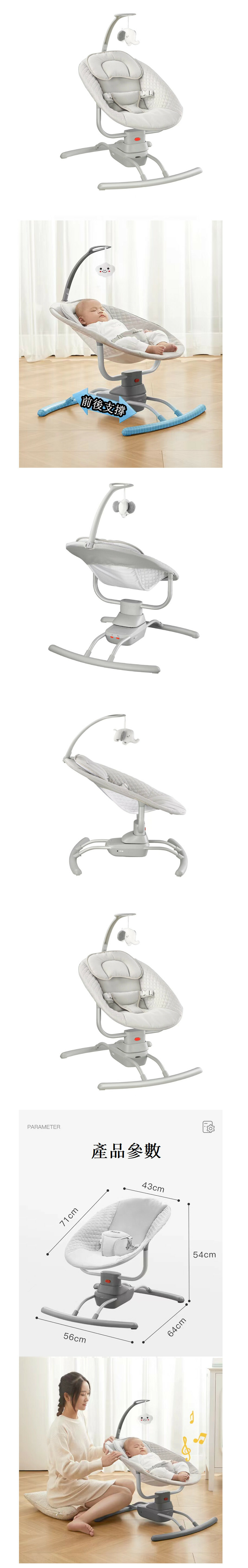 熱推嬰兒搖椅 藍牙電動搖椅 可坐可躺嬰兒搖搖床【灰色】