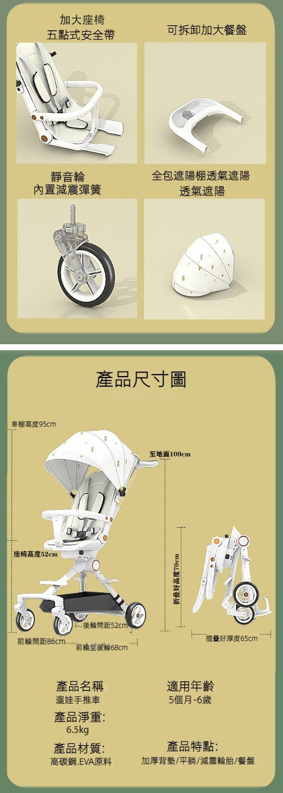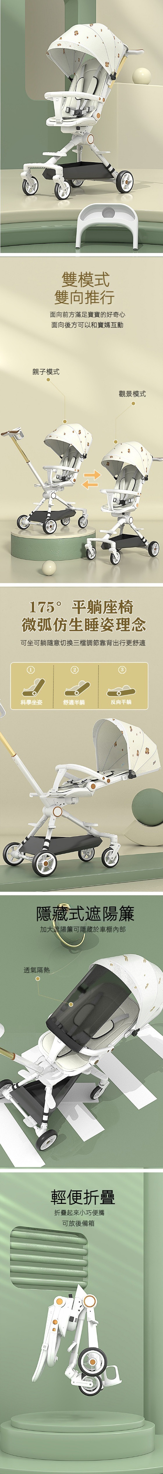 熱推可坐可躺可換向避震嬰兒推車(草莓粉)