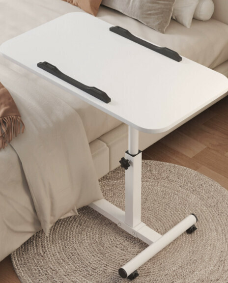 熱推床邊升降電腦桌(單擋條-黑色白架)【尺寸:長48*寬30*高59-89cm】