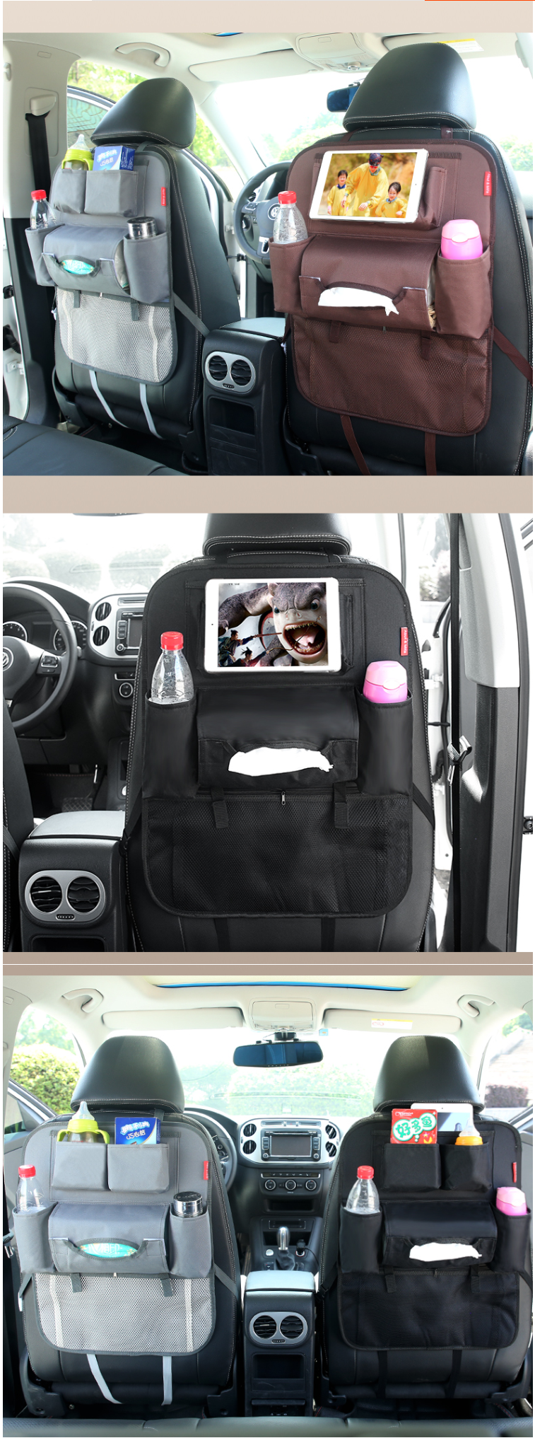 熱推汽車椅背帶多功能座椅雜物袋(毛粘布 棕色)
