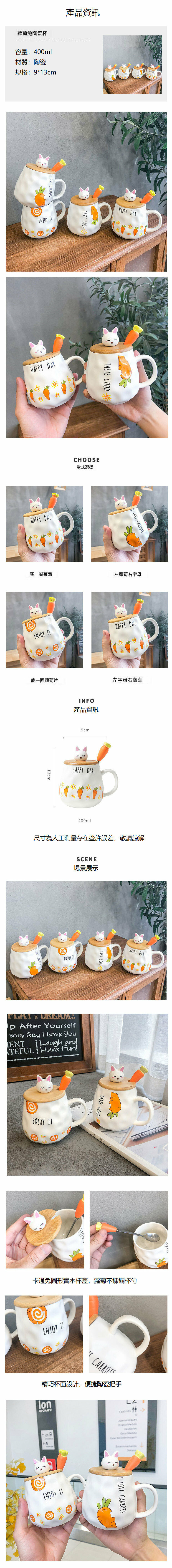 熱推帶蓋陶瓷馬克杯(帶勺子)-(左字母右蘿蔔-木蓋)