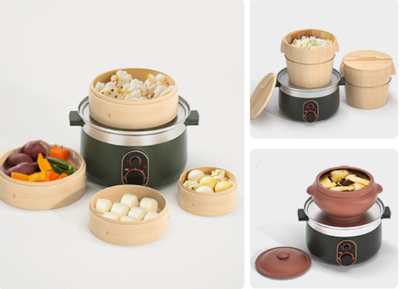 熱推電蒸鍋(墨綠色)(規格:鍋口外徑:28CM*蒸汽孔直徑14CM*鍋內深度11CM)