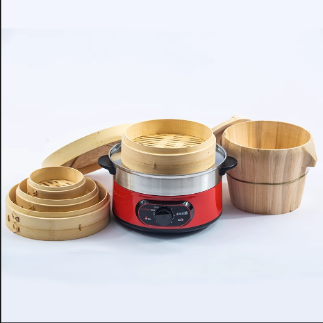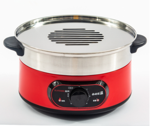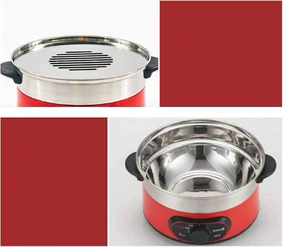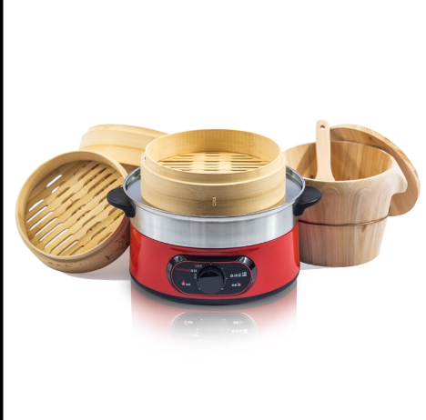 熱推電蒸鍋(紅色)(規格:鍋口直徑30CM*鍋內深度12CM*蒸片蒸氣孔直徑14CM)