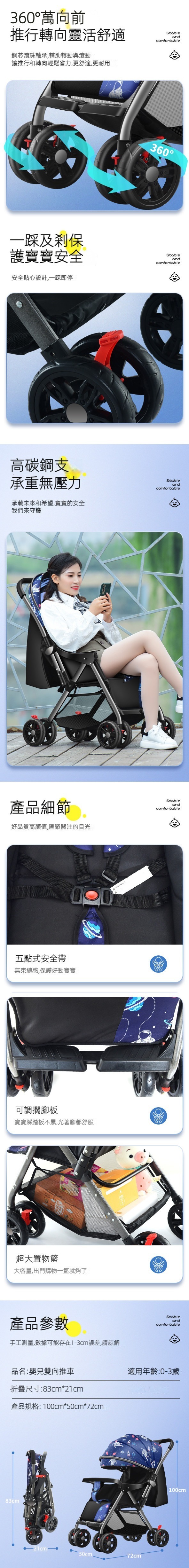 熱推可坐躺摺疊避震嬰兒推車(至尊版【碧螺藍】)