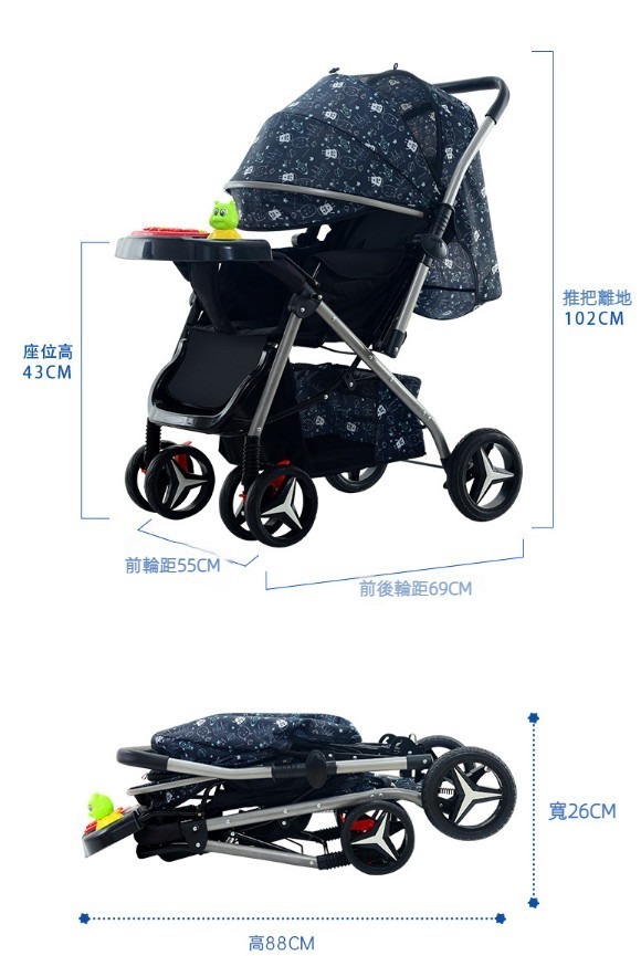 熱推可坐可躺摺疊四輪避震嬰兒推車(旗艦版【藕粉色】)
