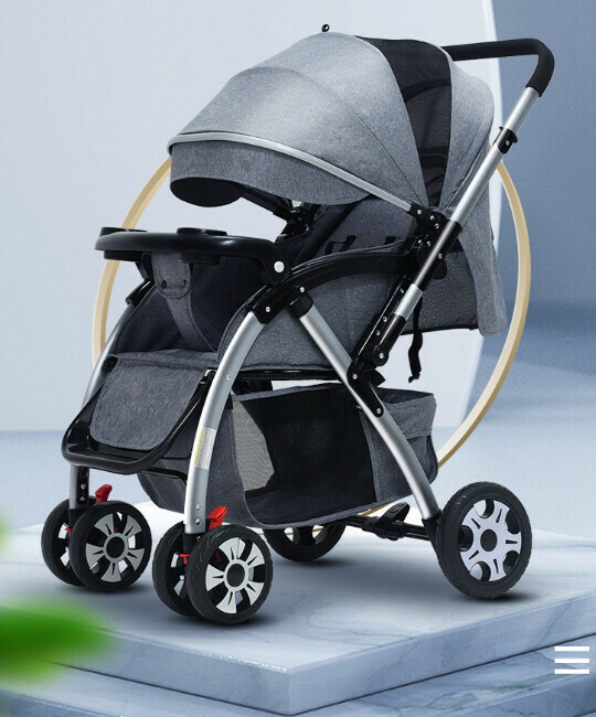 熱推可坐躺摺疊避震嬰兒推車(6601牛仔藍發泡輪)