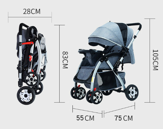 熱推可坐躺摺疊避震嬰兒推車(6601粉色發泡輪)
