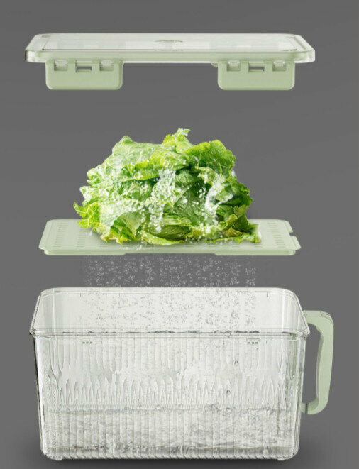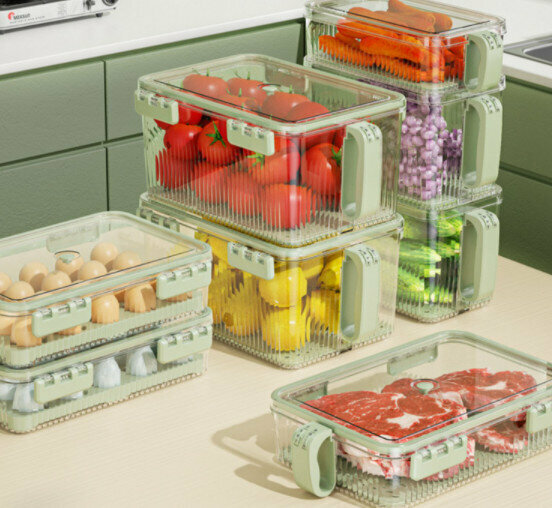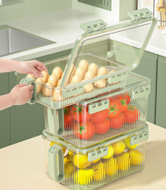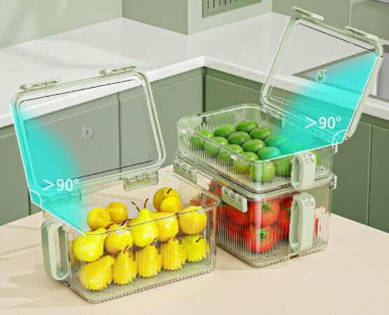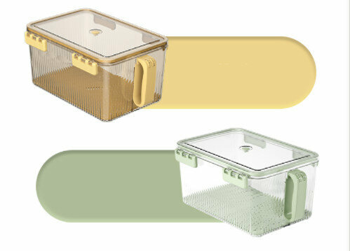 熱推冰櫃收納盒【1個裝】【大號高款12L透明黃】【四卡扣密封/計時鎖鮮/帶瀝水板】
