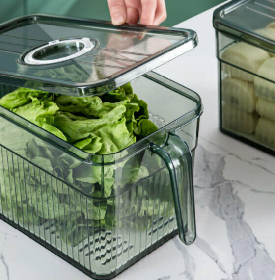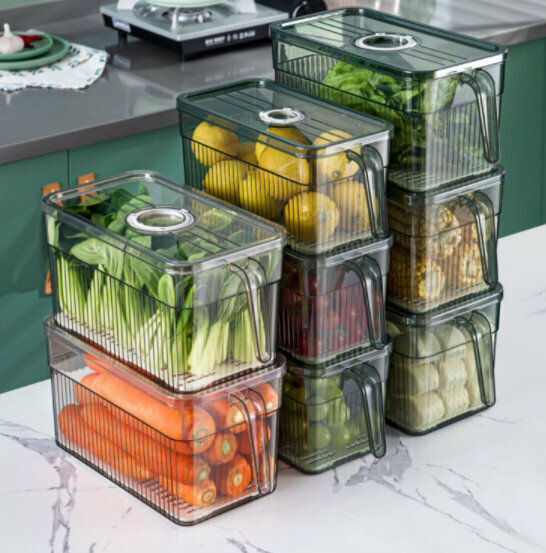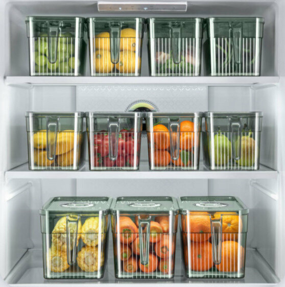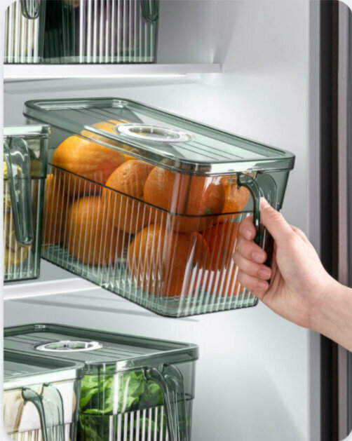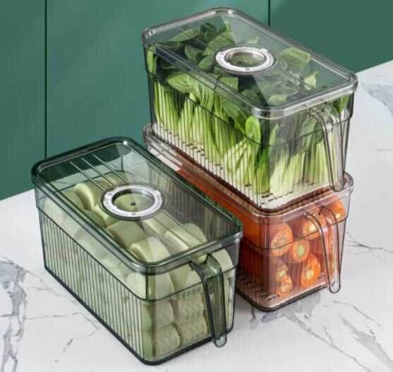 熱推冰櫃收納盒【【小號-透明綠】計時針+瀝水板】