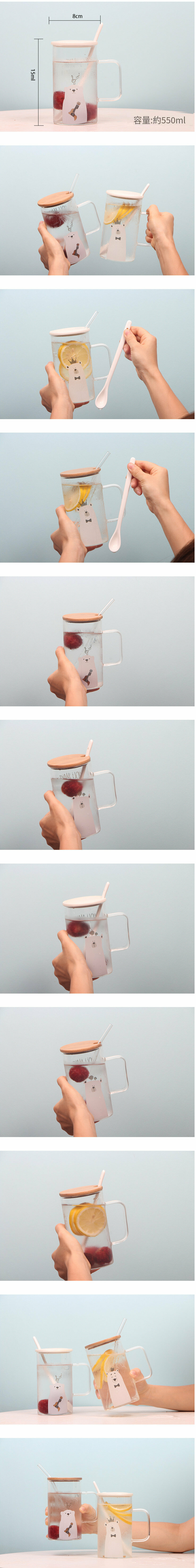 熱推玻璃杯 愛心熊【帶瓷蓋+勺+吸管+杯墊】