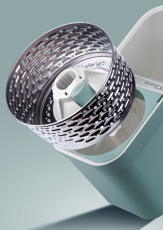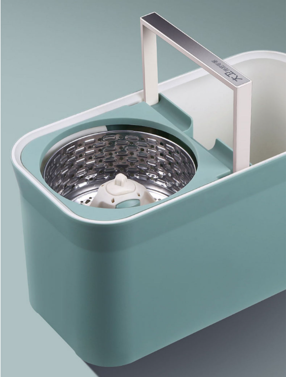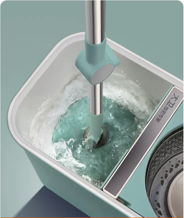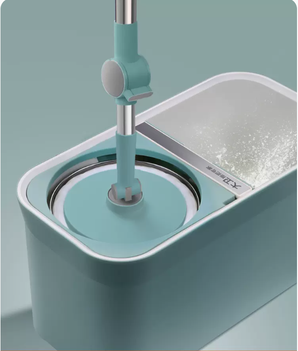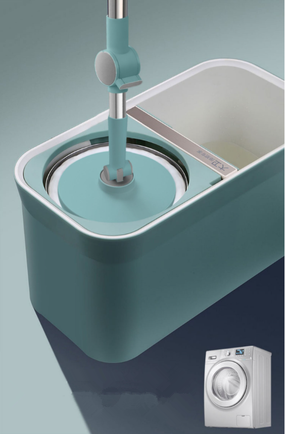 熱推免手洗旋轉拖把(青山黛)(加強桿+塑膠盤+金屬籃+2個拖把頭)(規格:拖把尺寸:127*40*4.5CM,拖把桶尺寸:47*24*25CM)