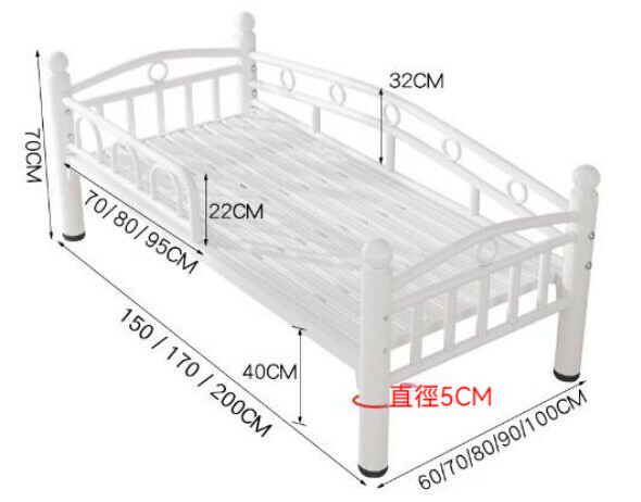 熱推鐵藝兒童床(加厚靜音170*70*40cm四面護欄)