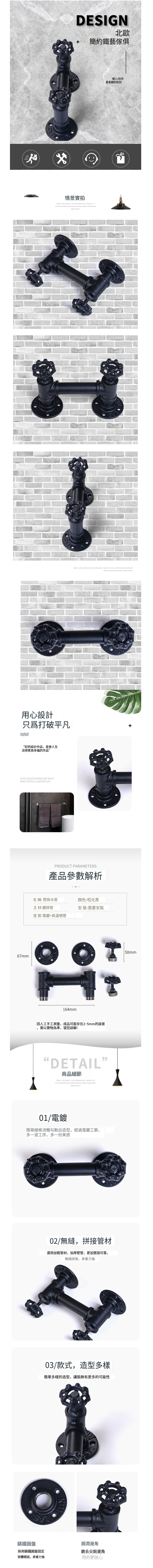 熱推鐵藝水管壁架把手家用櫃子門把手牆上裝潢壁掛(黑色,164mm*67mm)