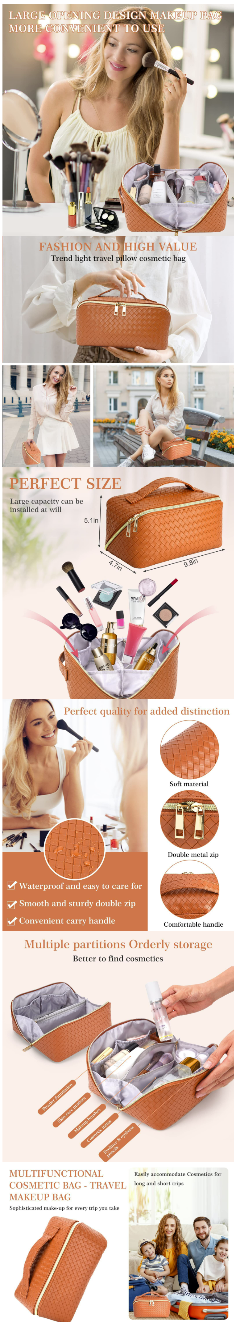熱推大容量皮革防水旅行化妝包(橙色 尺寸12.9cm*11.9cm*24.8cm )