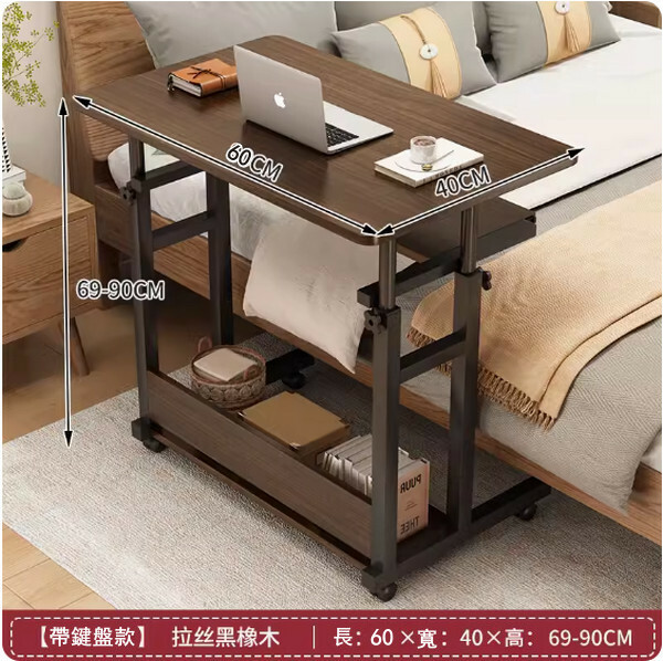 熱推可升降移動電腦桌(帶鍵盤托-拉絲黑橡木)【尺寸:長60*寬40*高69-90cm】