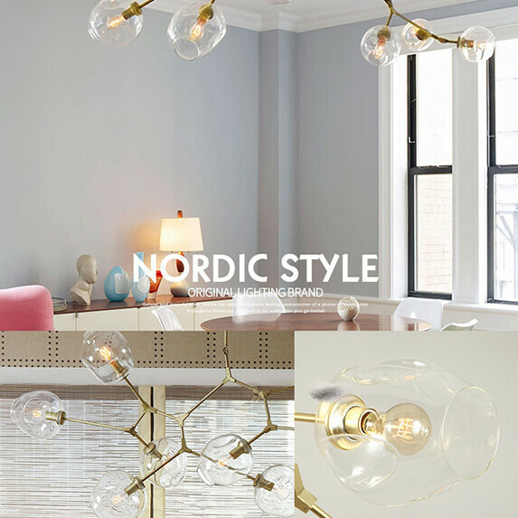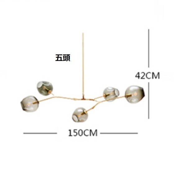 熱推魔豆分子吊燈(5頭槍金色_透明玻璃罩_5瓦LED)