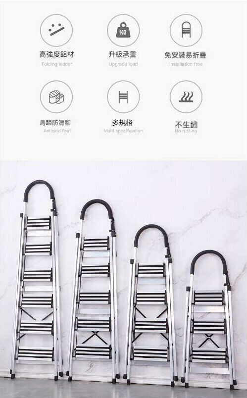 熱推多功能鋁合金折疊梯(加厚防滑3步鋁合金-藍色)