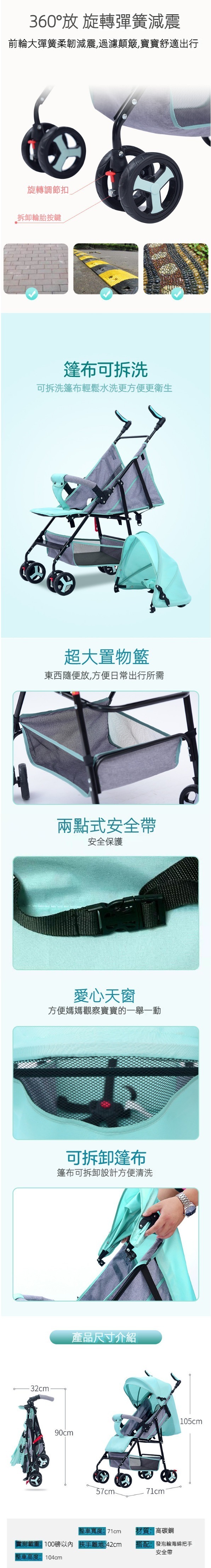 熱推多功能摺疊式可坐躺輕便嬰兒手推車(602粉色加棉墊【白管一鍵收車】)