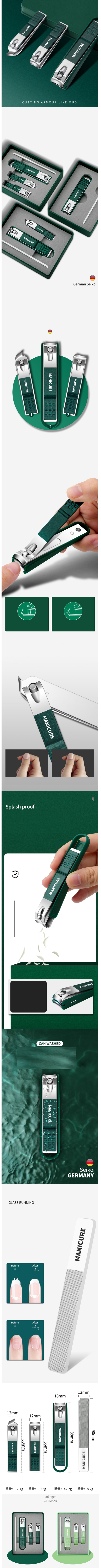熱推指甲剪指甲刀套裝((薄荷綠)指甲鉗3件套盒裝)