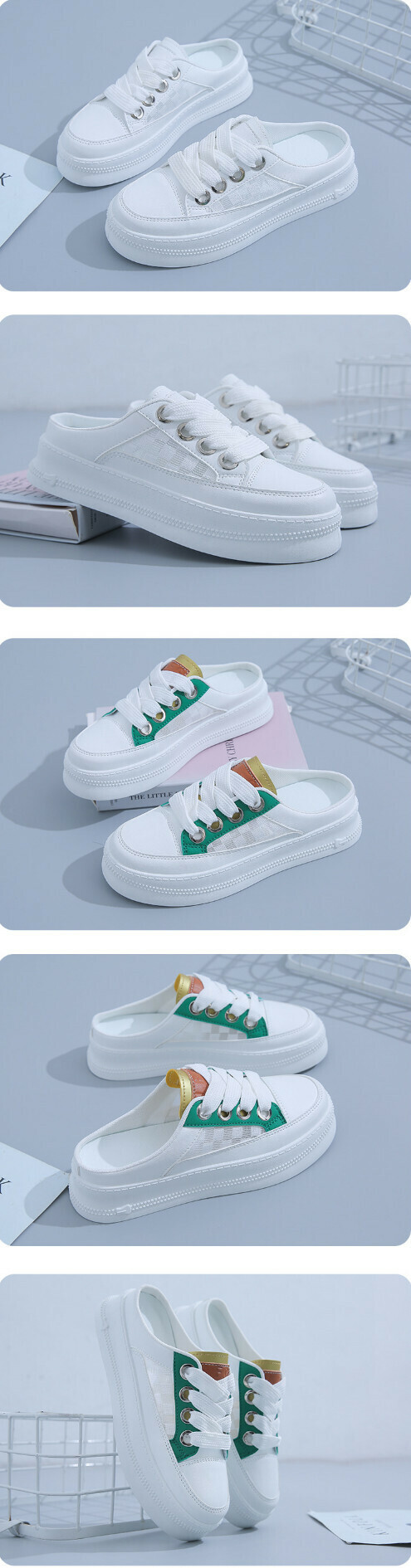 熱推網麵包頭平底半拖鞋(Q03白綠色)【35-40碼】【下單後聯絡客服確認發貨尺碼】