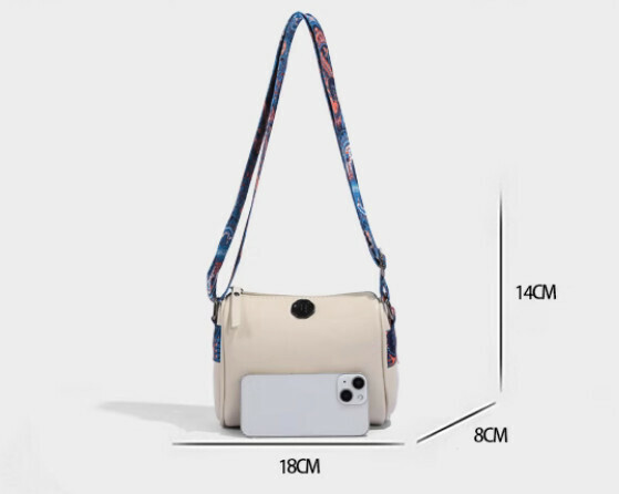 熱推油蠟軟皮枕頭單肩斜挎包(米白色)