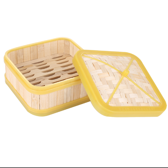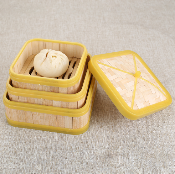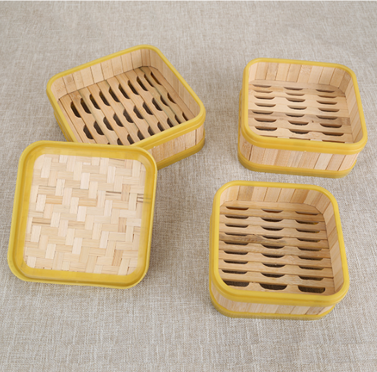 熱推塑膠膠邊竹制正方形蒸籠(壹籠壹蓋)(規格:5寸-8寸)(下單後請聯絡客服確認發貨尺寸)