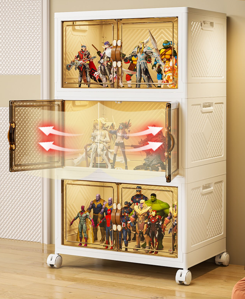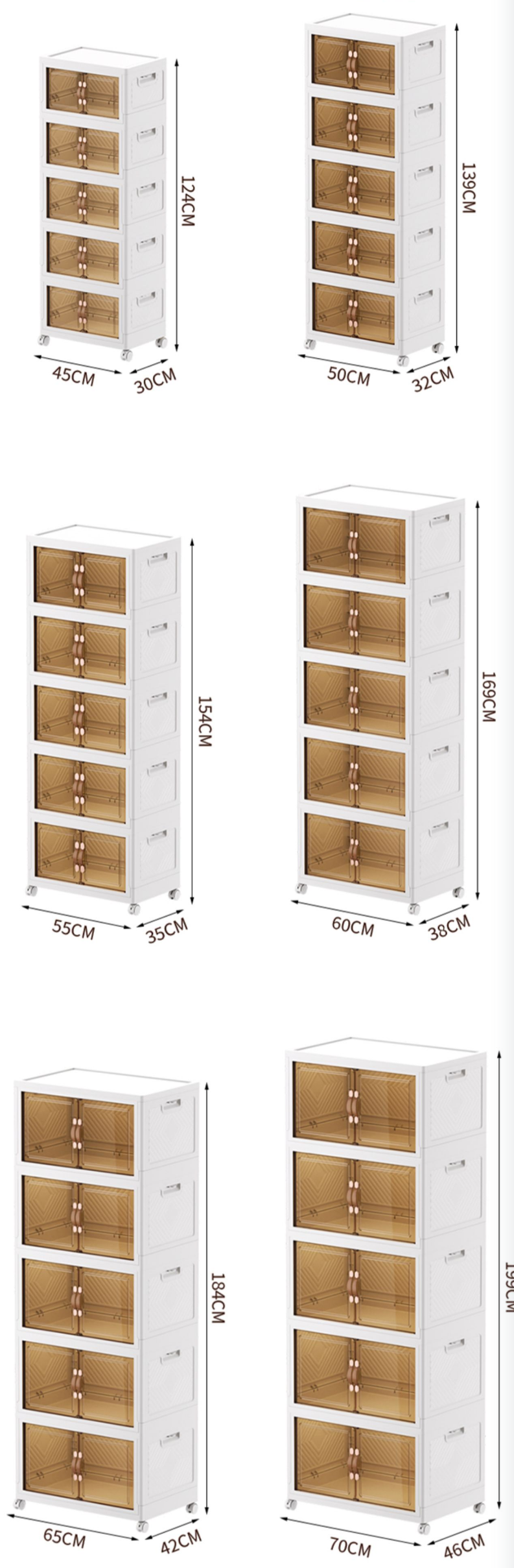 熱推帶輪免安裝通透防塵儲物櫃子(白色-3層)(尺寸:46*70*121CM)