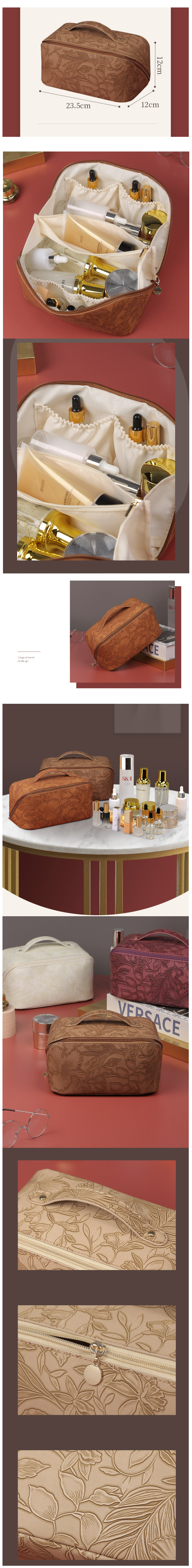 熱推復古風立體壓花化妝包(焦糖色 尺寸23.5cm*12cm*12cm )