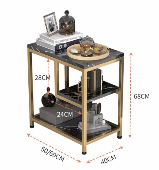 熱推側邊櫃茶幾(金色架+黑色紋理)【尺寸:長60*寬40*高68cm】