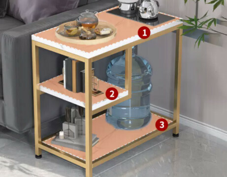 熱推側邊櫃茶幾(金色架+白色紋理)【尺寸:長50*寬40*高68cm】