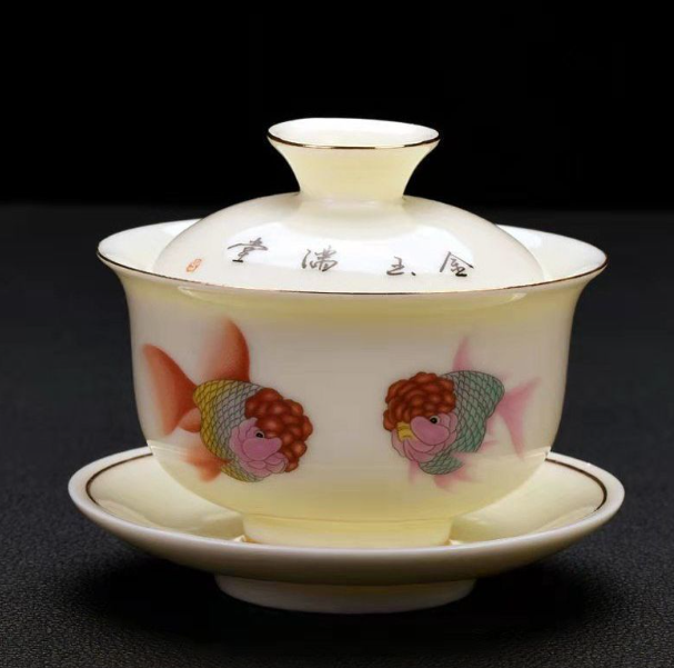 熱推茶壺(寶石黃有魚蓋碗【長9.7cm*高9.5cm 容量135ml】)