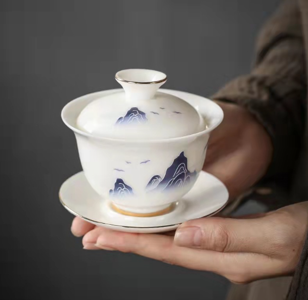 熱推茶壺(羊脂玉山水高蓋碗【長9.7cm*高9.5cm 容量135ml】)