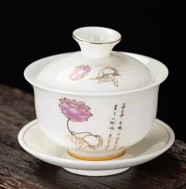 熱推茶壺(羊脂玉蓮花蓋碗【長9.7cm*高9.5cm 容量135ml】)