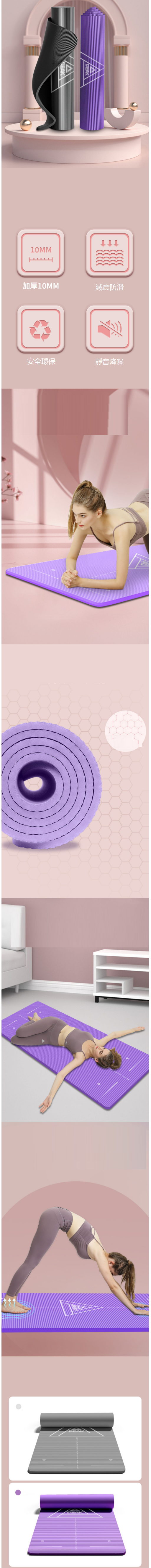 熱推加厚加寬瑜伽墊(淺灰色【體位線(10mm)】)