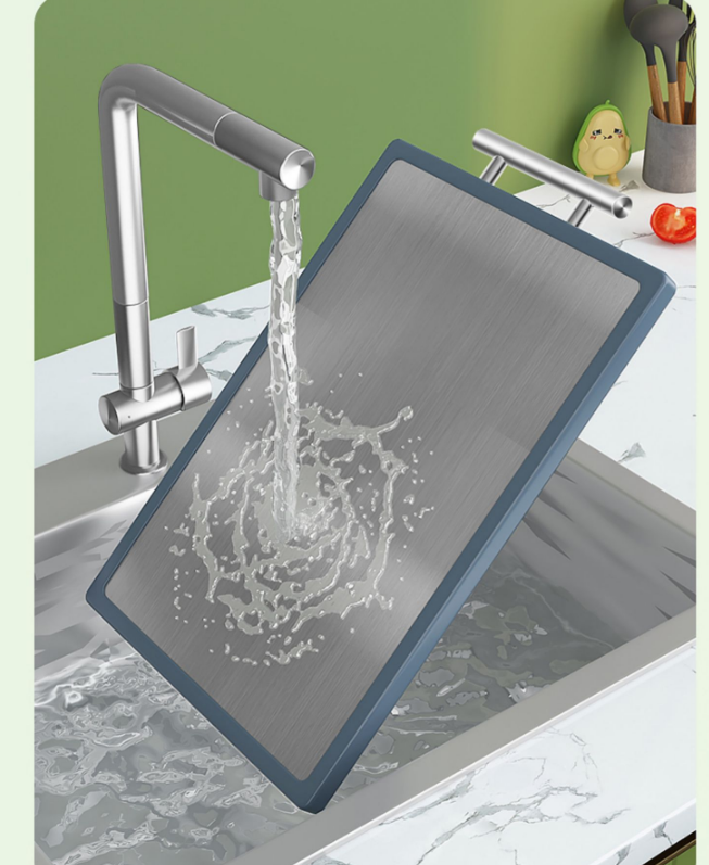 熱推加厚抗菌防黴雙面不銹鋼切菜板(小麥秸杆+不銹鋼)(尺寸:中號35*25CM)