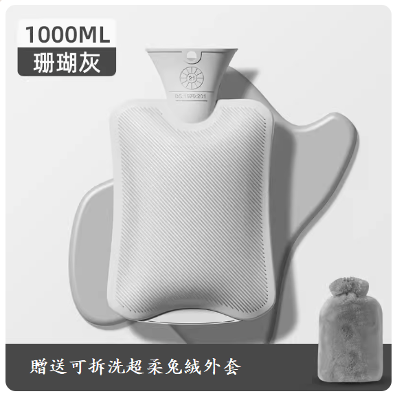 熱推注水熱水袋(灰色1000ml-防爆內膽【長毛絨套】)