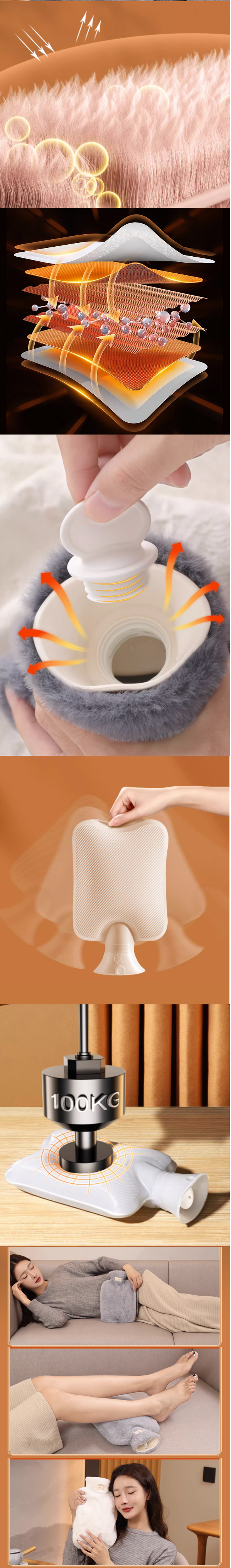 熱推注水熱水袋(粉色2000ml-防爆內膽【長毛絨套】)