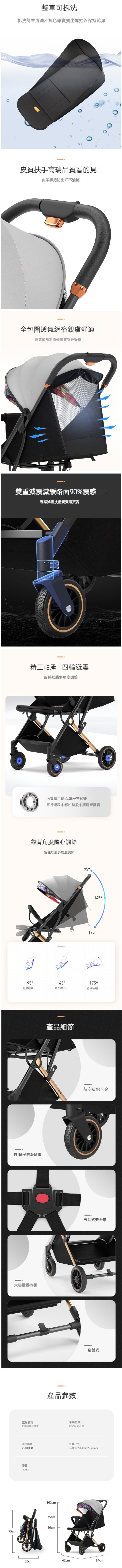 熱推可坐可躺可摺疊寶寶推車(卡其亞【pu橡膠輪】)