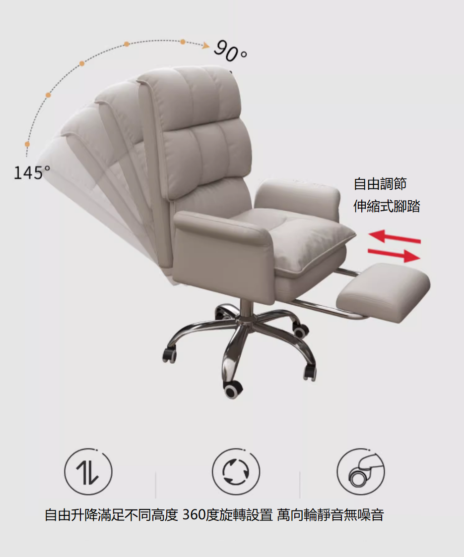 熱推可升降舒適辦公椅(淺灰色*圓盤款)(尺寸:43*39*73-85CM)